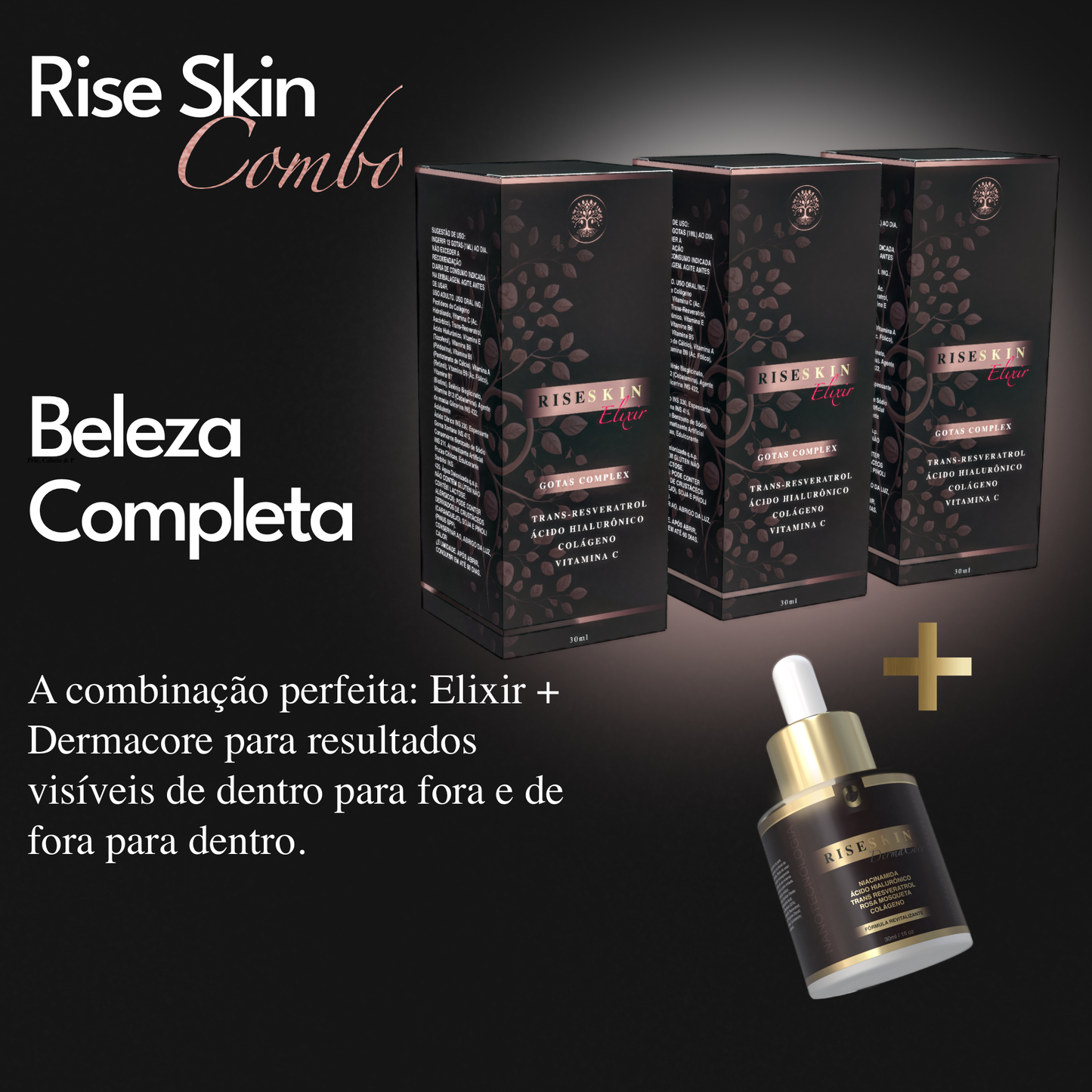 “Depois dos 30 comecei a sentir minha pele mais flácida e meu cabelo caindo bastante. Estou usando o Rise Skin Elixir junto com o Dermacore há 2 meses e já percebo diferença: meu cabelo está mais forte, minha pele mais firme e até minhas unhas estão crescendo mais saudáveis.”
